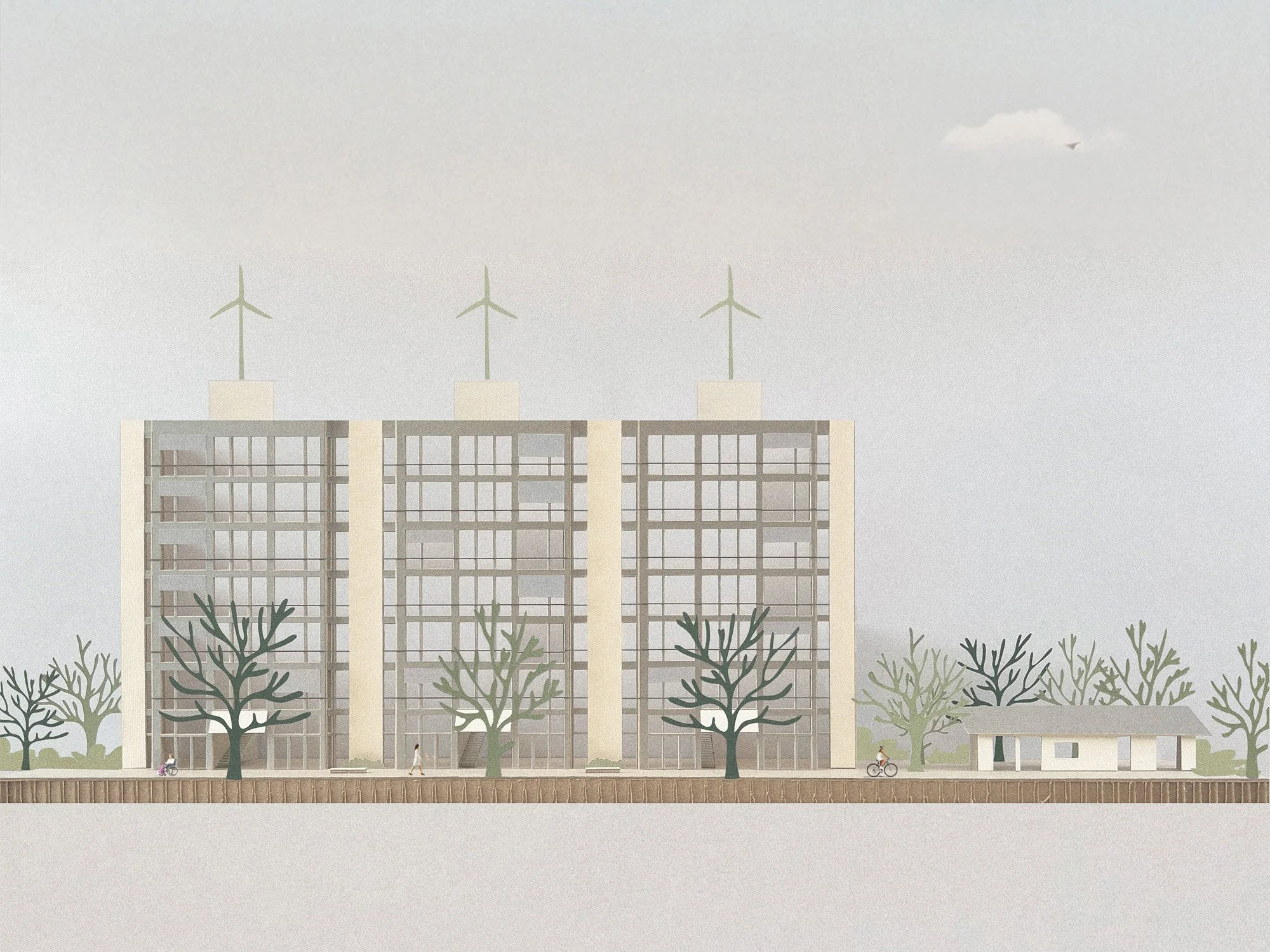 Wie wollen wir einmal leben? – Diese Frage sollte diese Bachelorarbeit von Anfang an prägen. Ein Haus für alle soll die Antwort sein. Am Neckarufer von Stuttgart-Cannstatt können alle Bewohnerinnen und Bewohner die natürliche Idylle von Wasser und Grün erleben – unabhängig davon, für welches Wohnkonzept sie sich entscheiden. Licht und Luft sind das Prinzip aller Wohnungen des terrassierten Gebäudes aus tragenden Lehmbausteinen. Ob jung oder alt, mobil oder nicht mobil – hier soll jeder ein Zuhause finden.