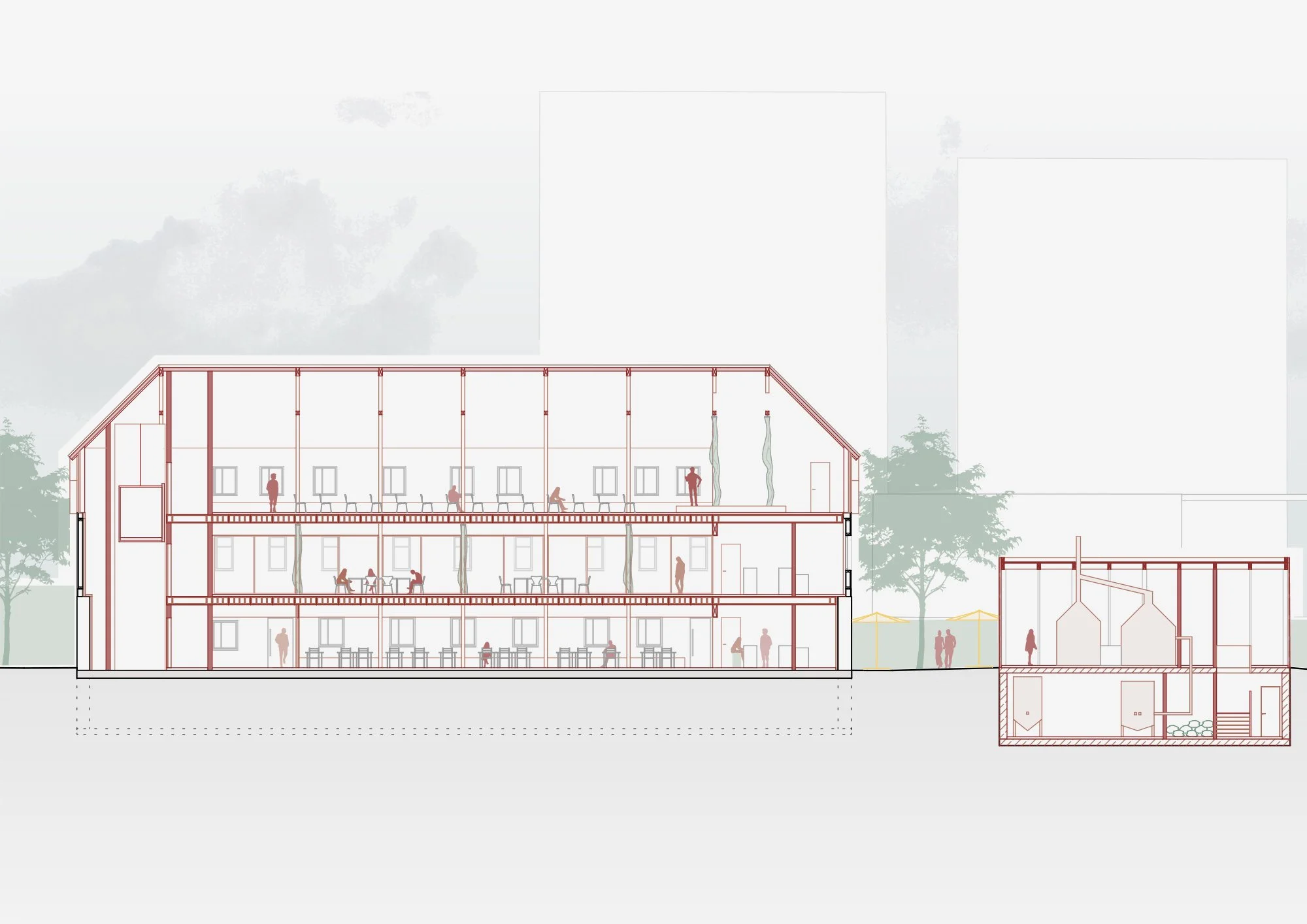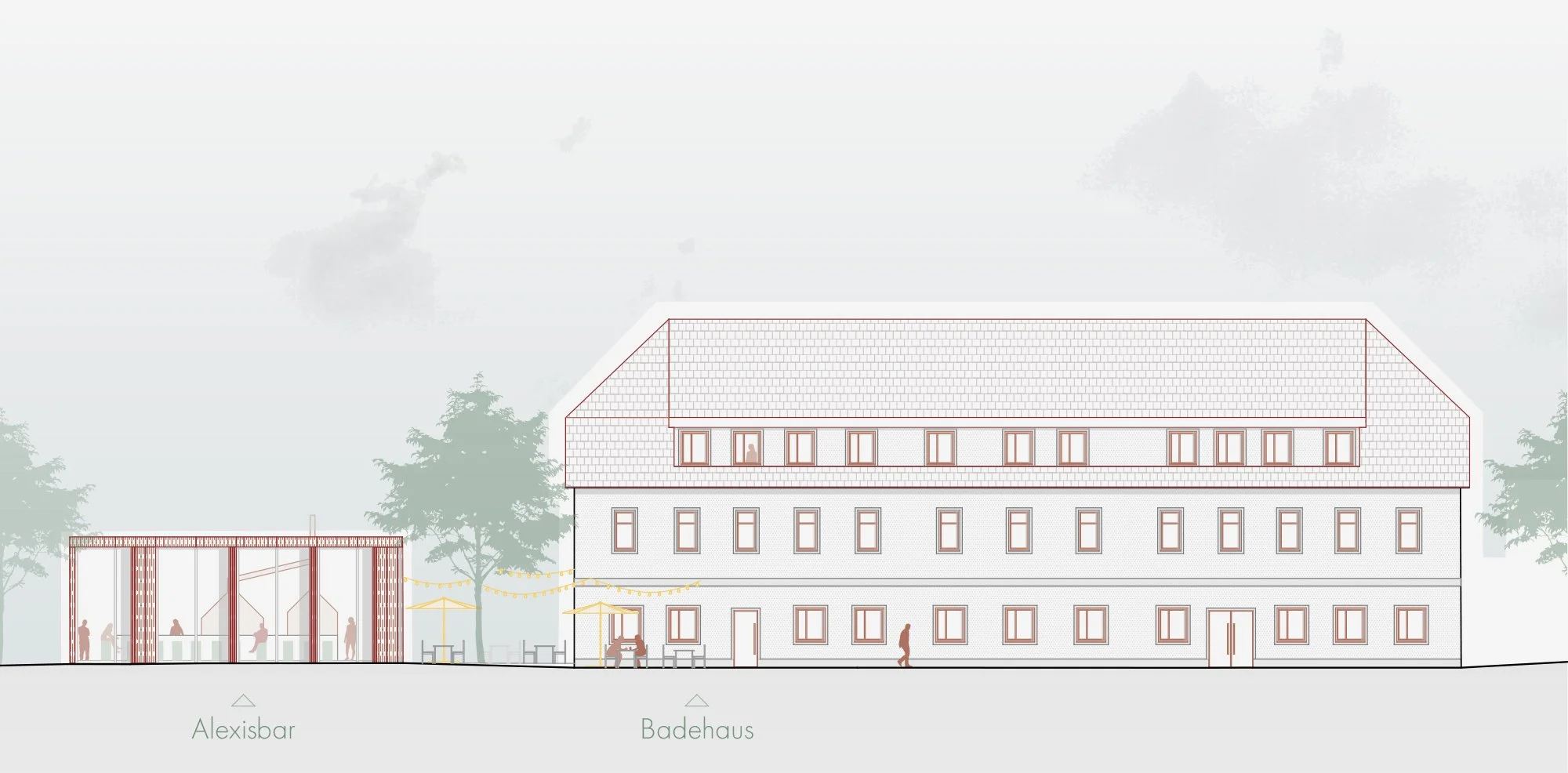 Das Konzept des Badehauses vereint den Erhalt der historischen Substanz mit verschiedenen Veranstaltungsflächen. Ergänzt wird das Ensemble durch eine neue Brauerei.