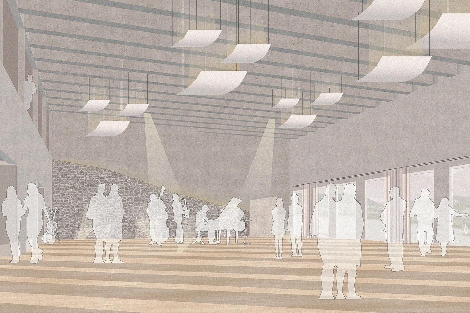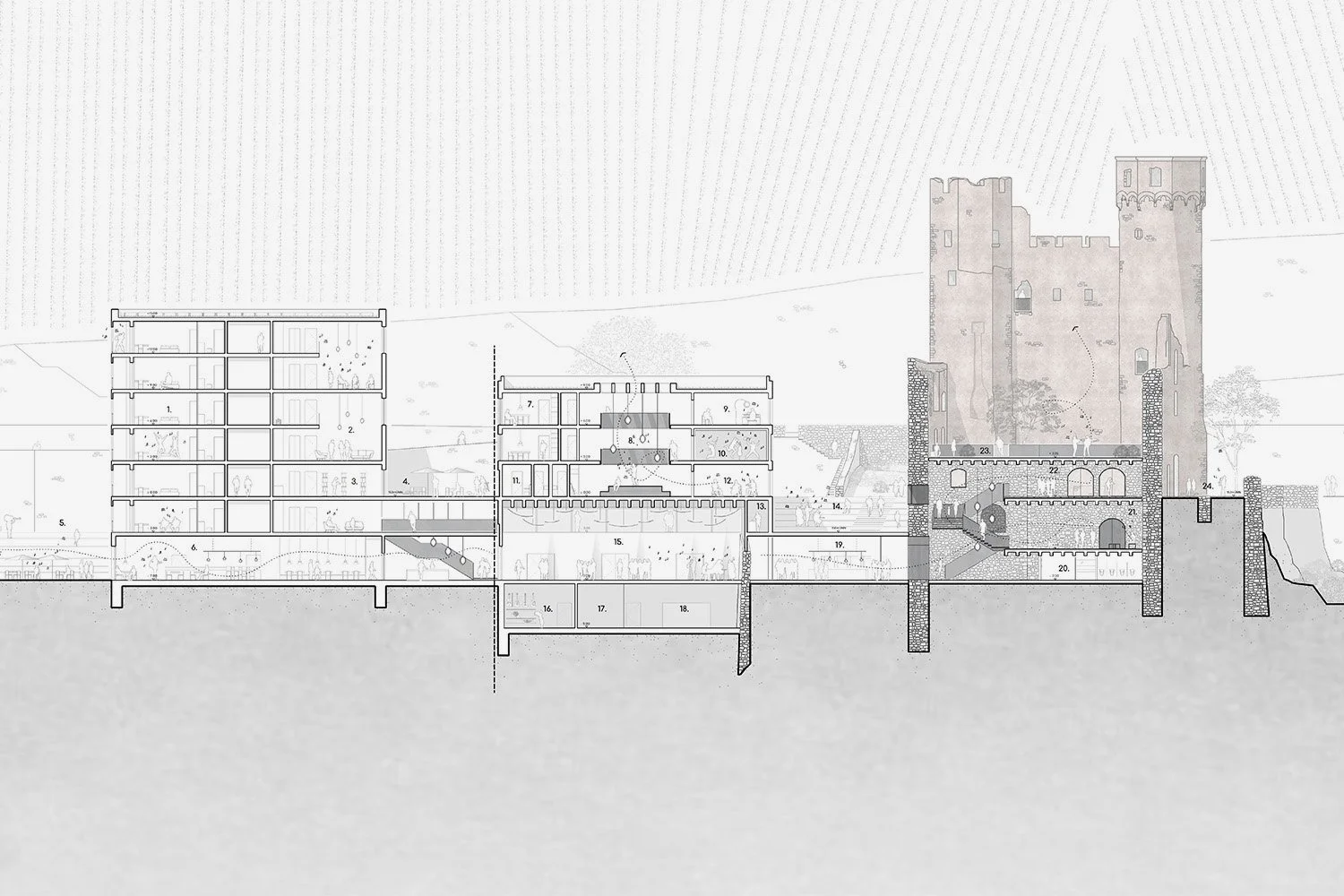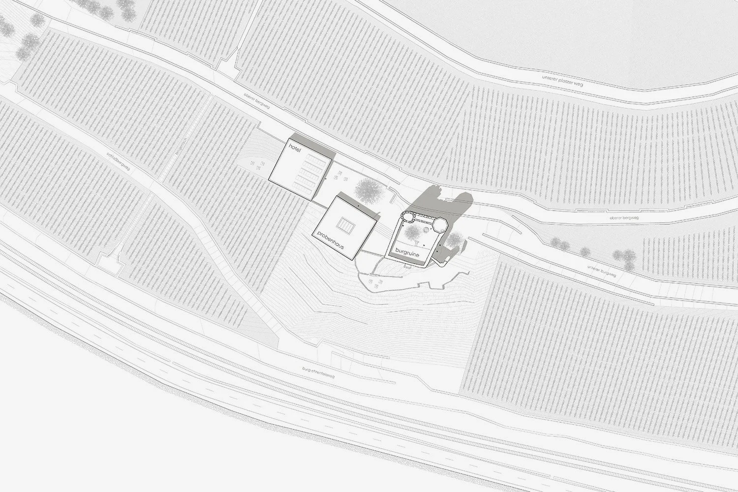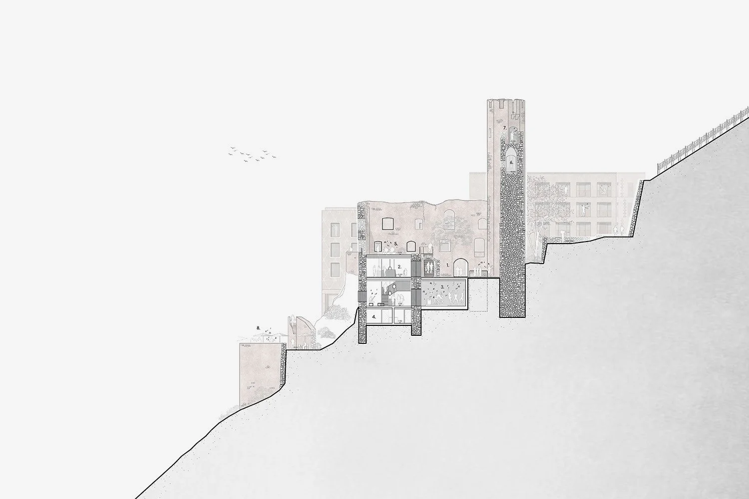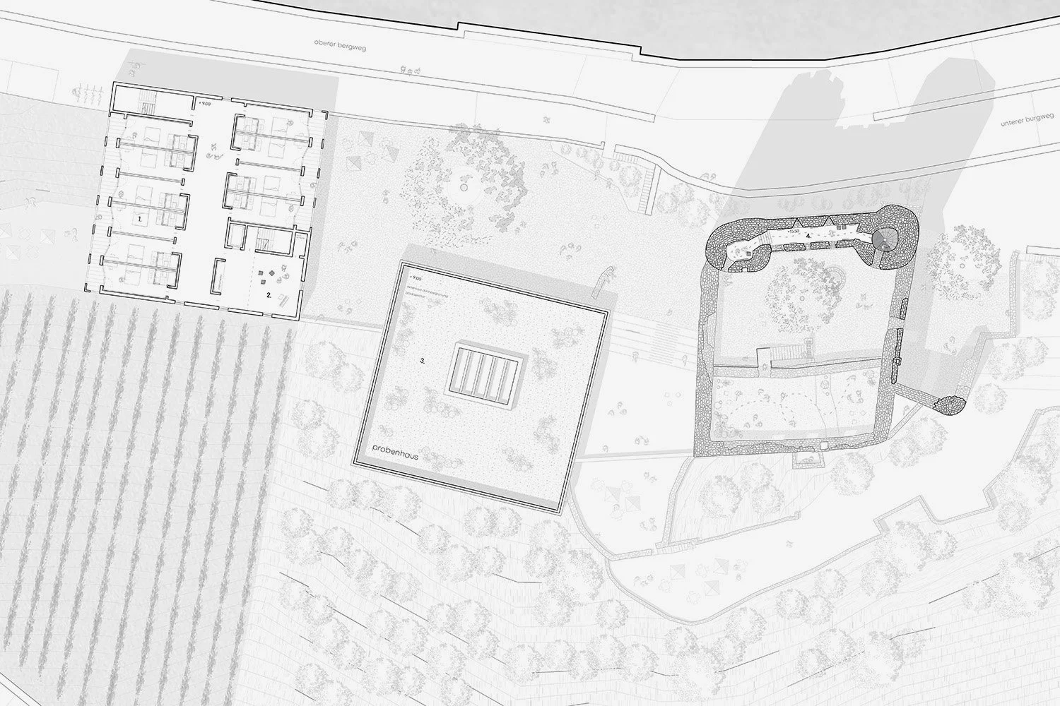 Ein Ort, geprägt von Einklang, Geschichte und schlummerndem Potenzial. Im Zusammenspiel von Alt und Neu verbindet der Entwurf Vergangenheit und Gegenwart. Das Erscheinungsbild der Burgruine bleibt erhalten und wird durch die Ergänzung gleichwertiger Baukörper in ihrer Silhouette weitergeführt. In seinem Erscheinungsbild fügt sich das neu gestaltete Ensemble harmonisch in die bestehende Landschaft ein und zeigt sich respektvoll im Umgang mit dem Bestand.
