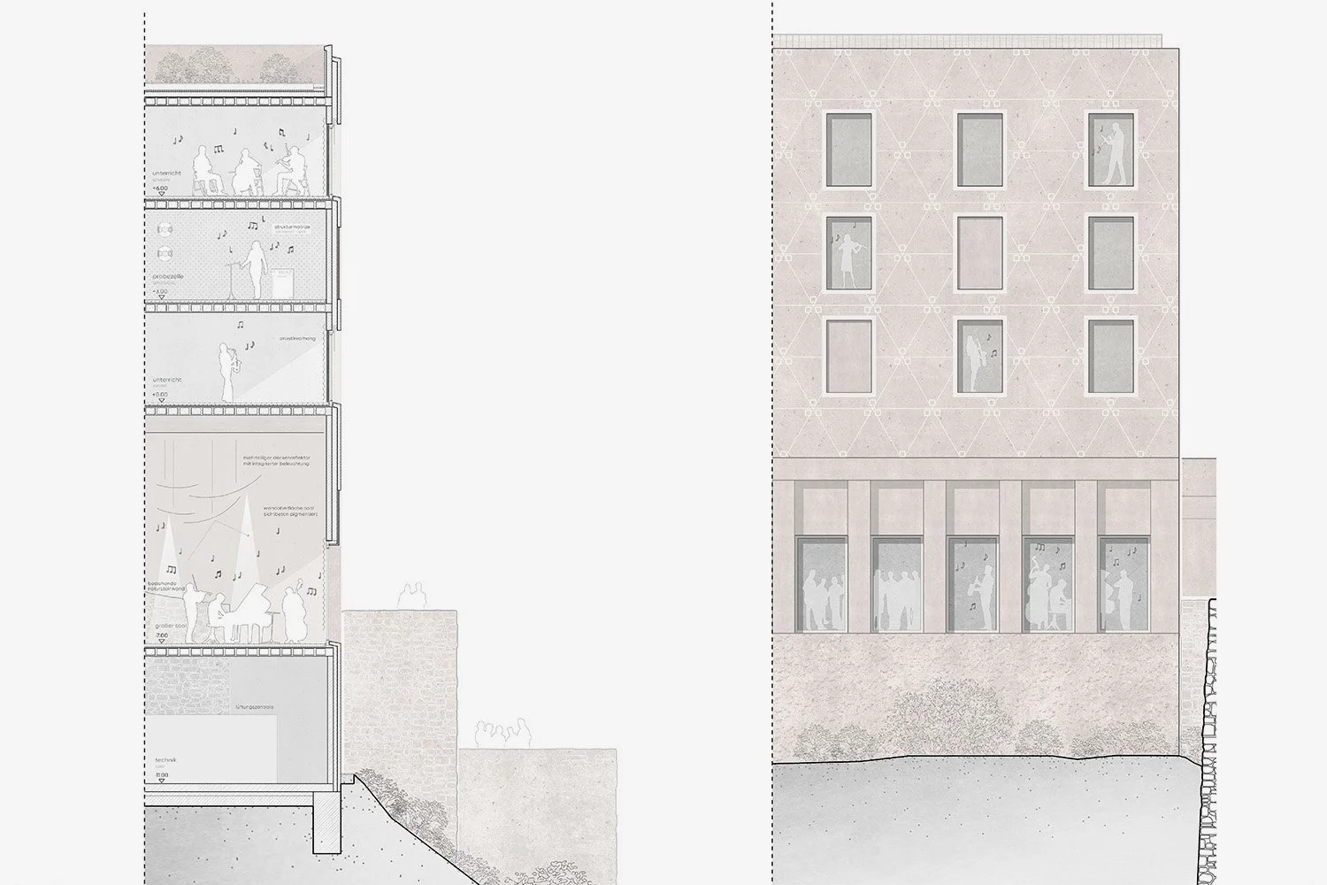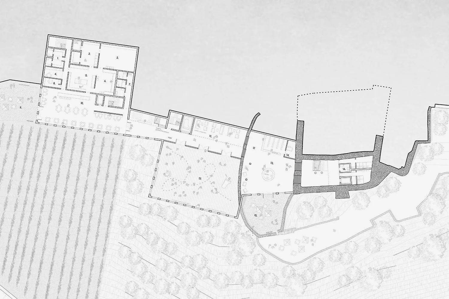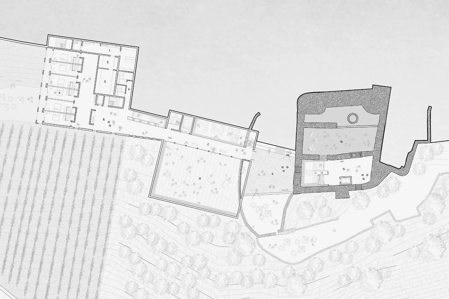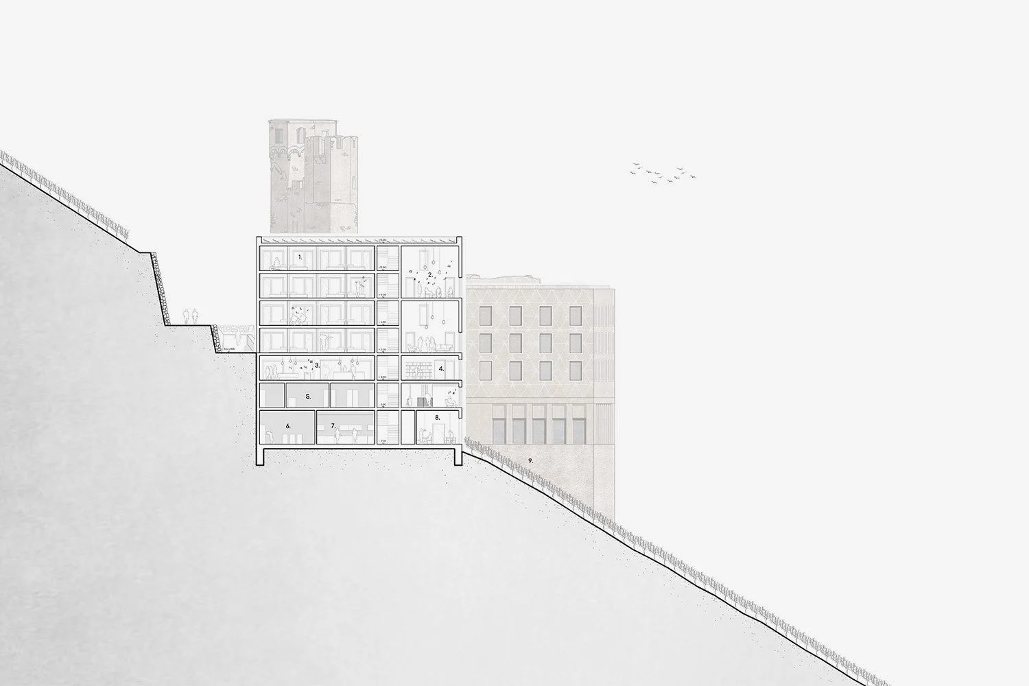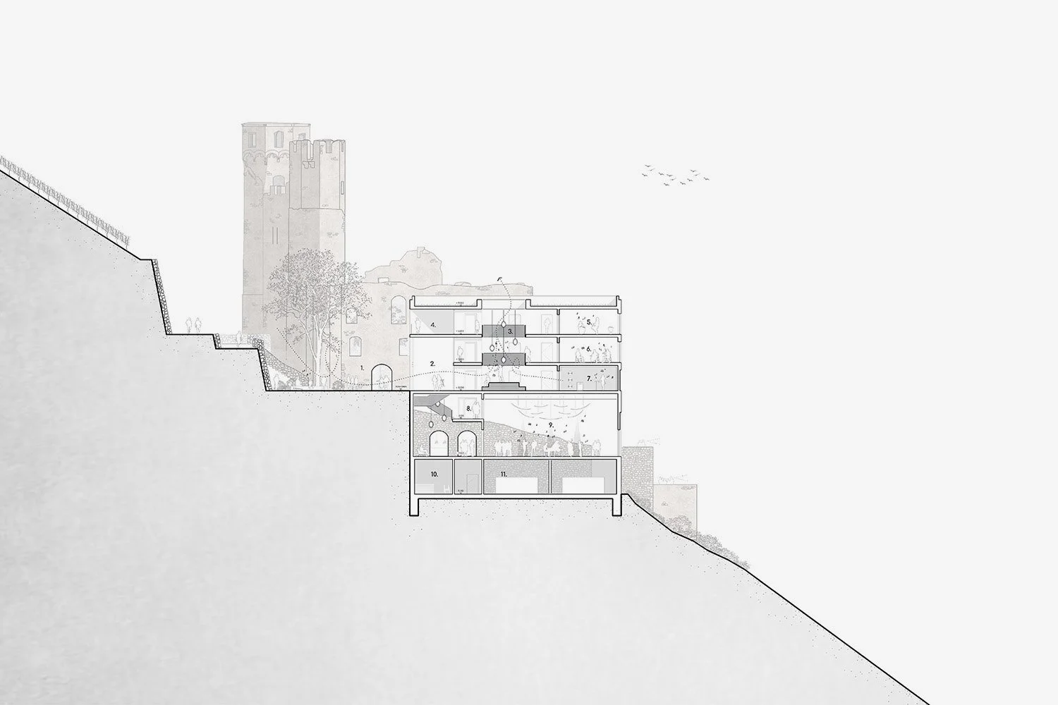 Ein Ort, geprägt von Einklang, Geschichte und schlummerndem Potenzial. Im Zusammenspiel von Alt und Neu verbindet der Entwurf Vergangenheit und Gegenwart. Das Erscheinungsbild der Burgruine bleibt erhalten und wird durch die Ergänzung gleichwertiger Baukörper in ihrer Silhouette weitergeführt. In seinem Erscheinungsbild fügt sich das neu gestaltete Ensemble harmonisch in die bestehende Landschaft ein und zeigt sich respektvoll im Umgang mit dem Bestand.