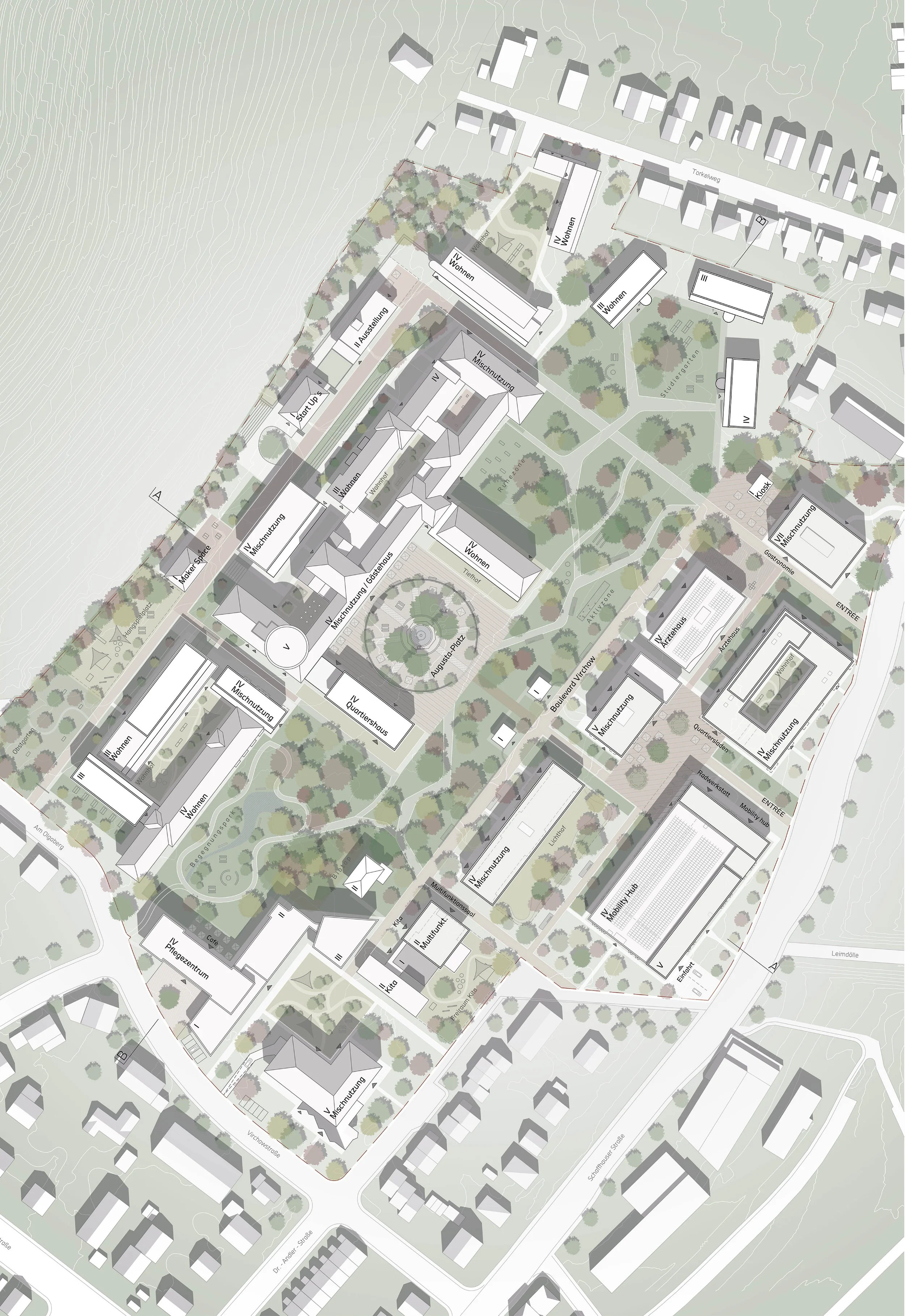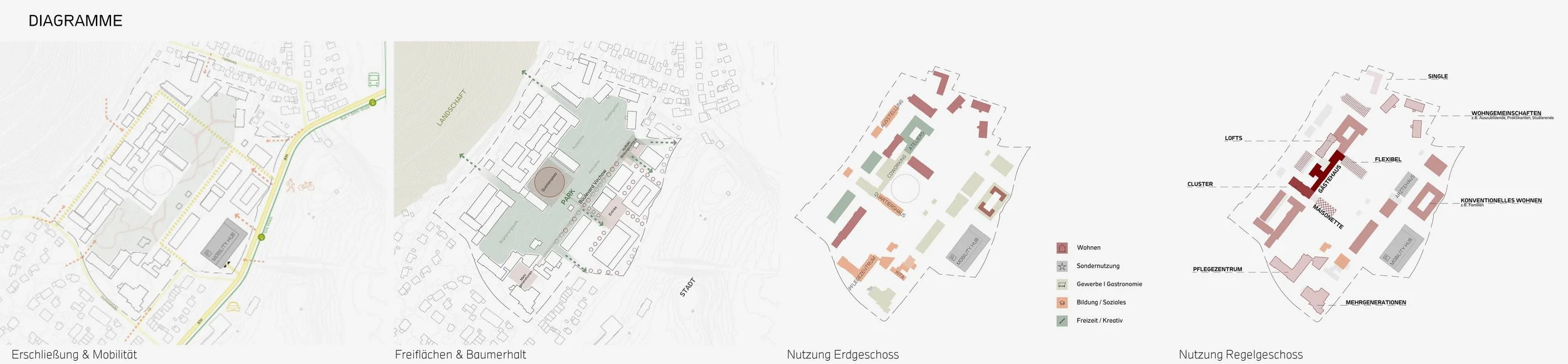 Um Leerstand und Verfall nach dem Auszug des Krankenhauses im Jahr 2035 zu vermeiden, präsentiert die Masterthesis ein mögliches Nachnutzungskonzept einschließlich der städtebaulichen Entwicklung des Areals vor dem Hintergrund der laufenden Stadtplanung.
